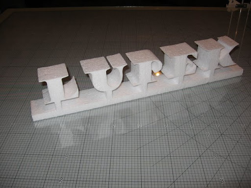 Reže use, kar se pač z vročo žico reže. Z takimi mašinami se izrezuje tudi depronarje. V prihodnjih parih dneh moram opravt še nekaj testov in za vsak material vnest par faktorjev, obnovit zalogo materiala. Potem pa štartam